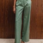 Ραμμένο στην Αθήνα, ακολουθώντας τις αρχές της κλασικής ραπτικής, αυτό το παντελόνι καμπάνα αποπνέει διαχρονική κομψότητα. Από μη ελαστικό, εμπριμέ ύφασμα, με ψηλή μέση και πλαϊνές τσέπες, είναι ιδανικό για σύγχρονες εμφανίσεις.
