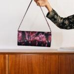 Τσάντα ώμου από γυαλιστέρο σατέν και επένδυση δέρματος.