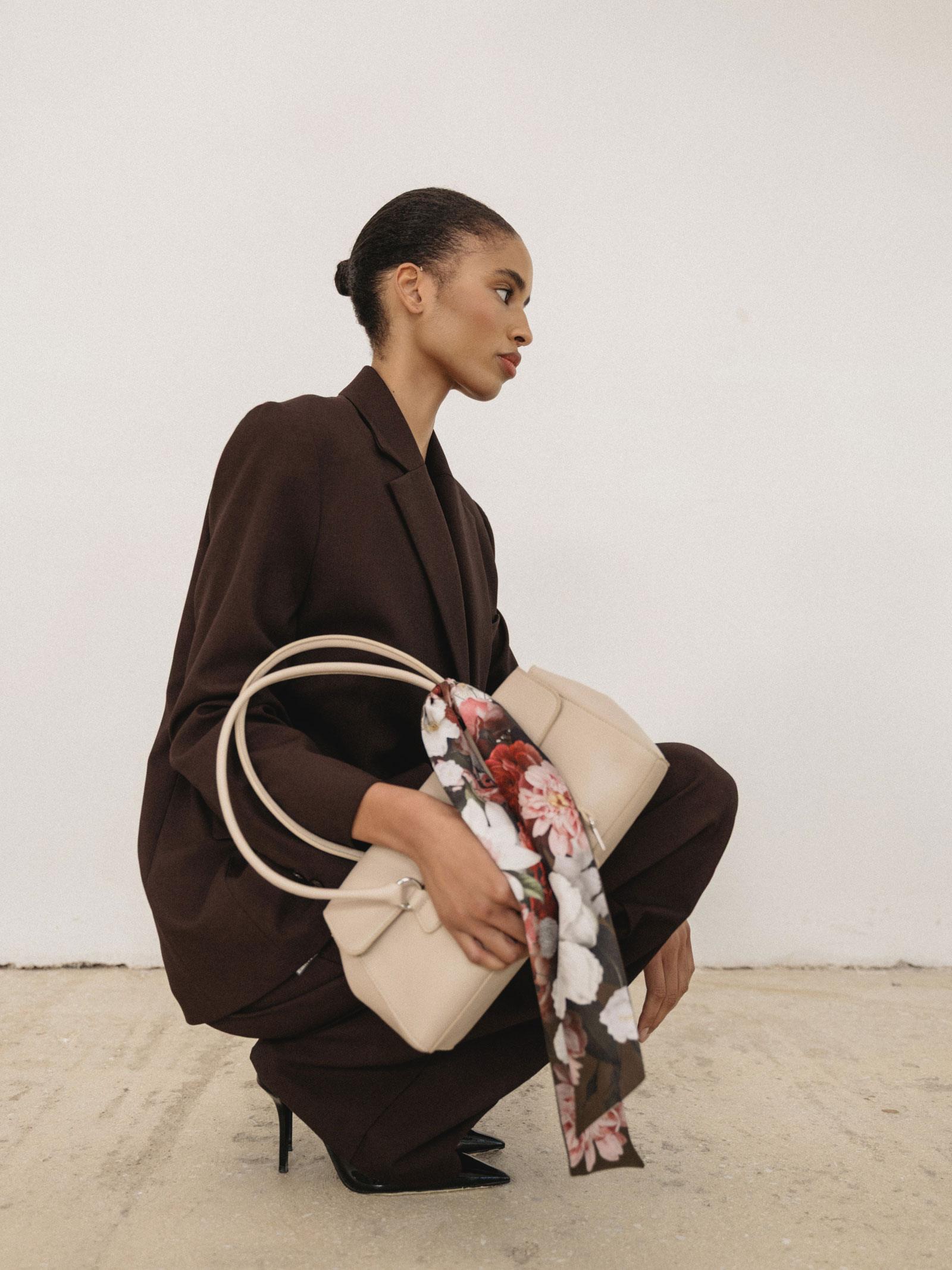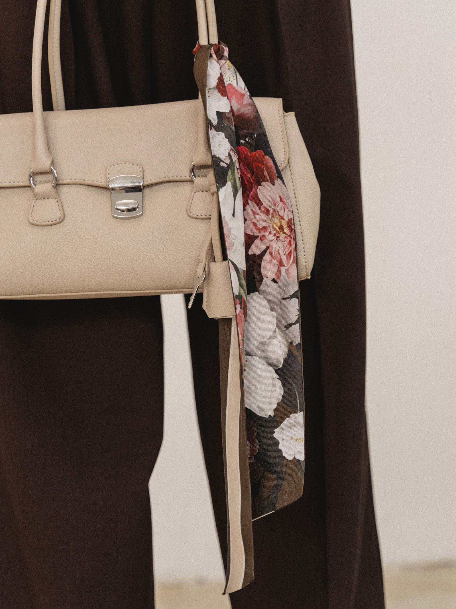Αποτυπώνοντας μια πληθωρική σύνθεση από καμέλιες στη μία όψη και μια γραμμική μπορντούρα στην άλλη, το μεταξωτό ribbon Camellia μπορεί να κρεμαστεί με χάρη από το χερούλι μιας τσάντας προσθέτοντας μια διακριτική πινελιά πολυτέλειας.