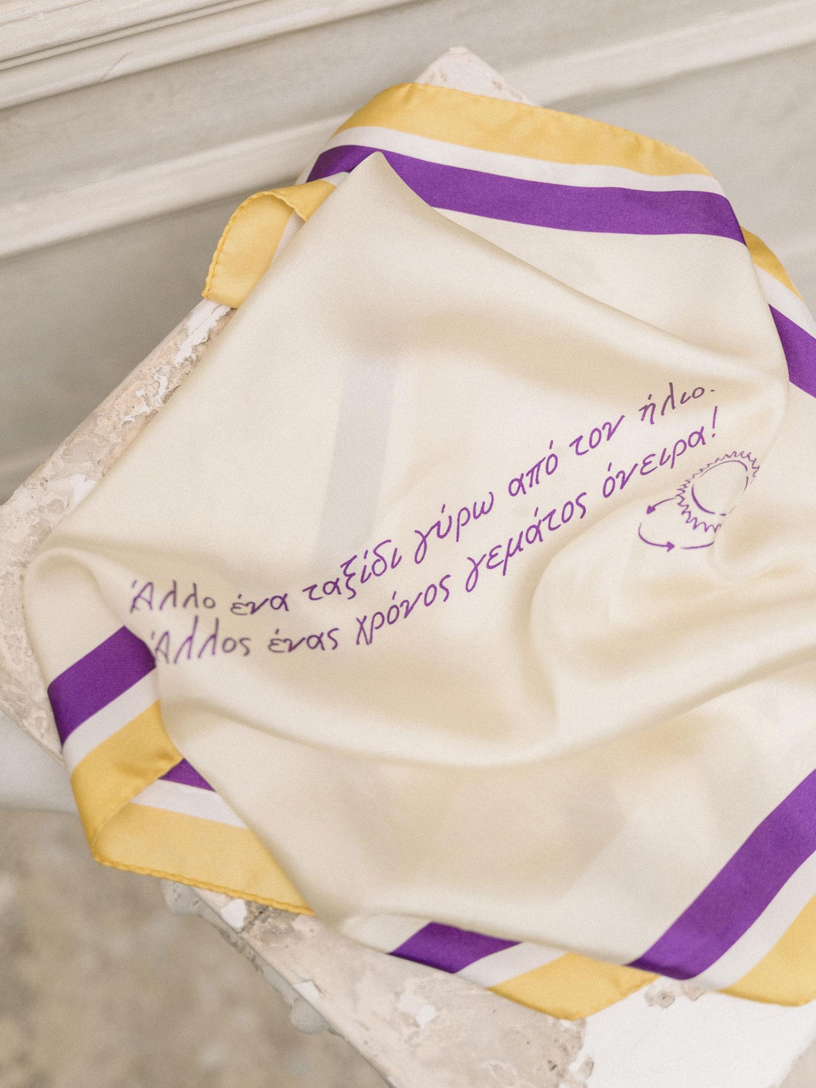 Σχεδιασμένο ως ένα ξεχωριστό δώρο γενεθλίων, αυτό το μεταξωτό μαντήλι εμπνέει μια ακόμα χρονιά γεμάτη προσωπική εξέλιξη, όνειρα και νέες περιπέτειες.
