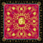 Μεγαλοπρεπώς διακοσμημένο με χρυσά μοτίβα πάνω σε κόκκινο φόντο, αυτό το μεταξωτό μαντήλι μπορεί να φορεθεί με χάρη ριγμένο στον έναν ώμο, στερεωμένο μέσα από μια ζώνη, καταλήγοντας σε ένα εντυπωσιακό over-blazer.