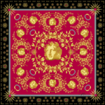Τοποθετώντας τον Μέγα Αλέξανδρο και τα εμβληματικά σύμβολα του στο επίκεντρο, αυτό το μεταξωτό μαντήλι, διακοσμημένο με δάφνες νίκης και τον ήλιο της Βεργίνας, αντηχεί θέματα κατάκτησης, κληρονομιάς και αιώνιας επιδίωξης του μεγαλείου.
