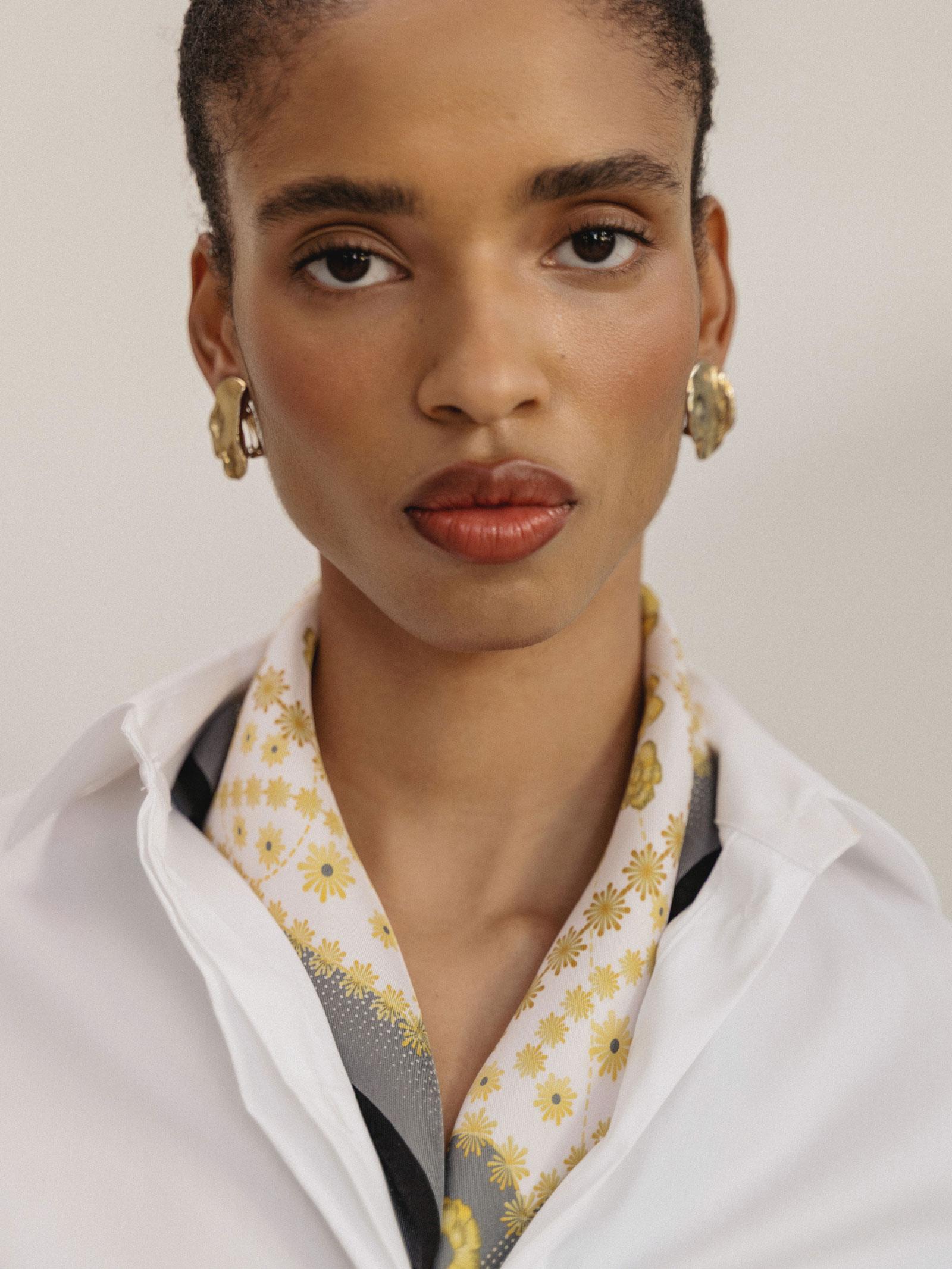 Διακοσμημένο με μια ποικιλία από κίτρινα άνθη, το μεταξωτό μαντήλι Karpathos μπορεί να φορεθεί μέσα από τον γιακά ενός πουκαμίσου, προσθέτοντας σε κάθε εμφάνιση μια διακριτική σοφιστικέ αίσθηση.