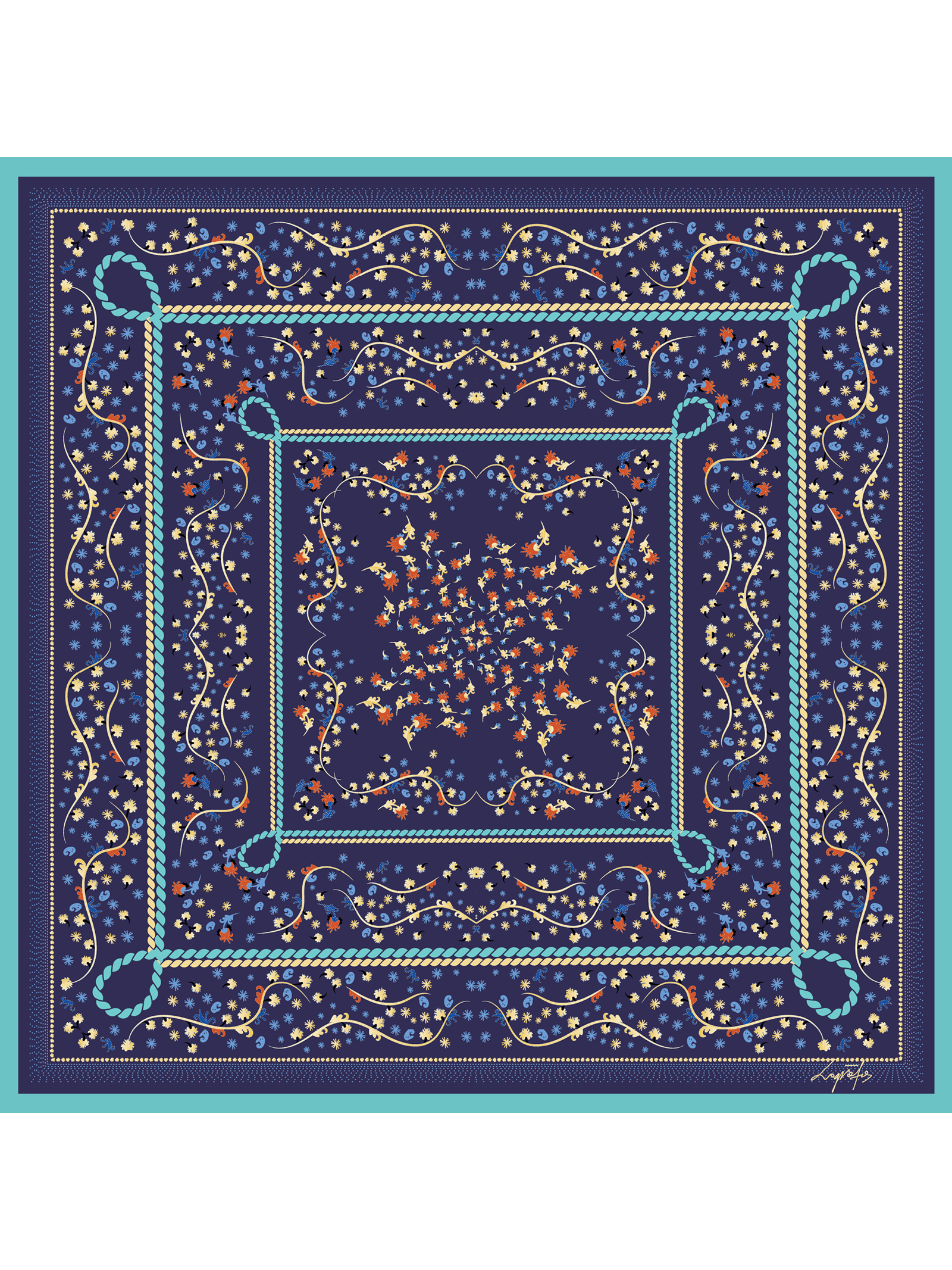 Συνδυάζοντας αρμονικά ντελικάτα λουλούδια με ναυτικά σχοινιά, το μεταξωτό μαντήλι Skyros μεταμορφώνεται σε ένα κομψό τοπ, με τις τέσσερις άκρες του δεμένες περίτεχνα σε έναν ενιαίο κόμπο.
